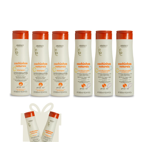 KIT 3 SHAMPOOS E 3 CONDICIONADORES CACHINHOS NATURAIS (GRÁTIS 1 SHAMPOO E 1 CONDICIONADOR)