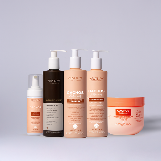 Apresentamos o lançamento mais esperado da linha Cachos Naturais: o Kit Light , pensado especialmente para fios ondulados e cacheados mais finos (curvaturas 2A a 3A) e com pouca densidade.