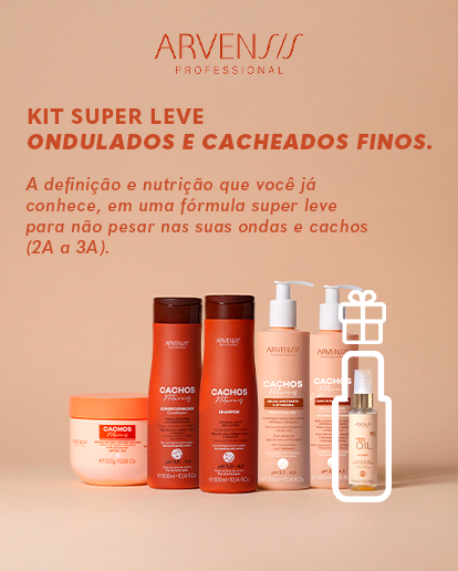 O Kit Super Leve Cachos Naturais Arvensis foi desenvolvido especialmente para cabelos ondulados e cacheados de fios finos — das curvaturas 2A até 3A — que exigem tratamento profundo sem pesar. Ideal para quem está começando a rotina de cuidados com a linha Cachos Naturais, o kit reúne limpeza suave, hidratação inteligente, ativação da curvatura e finalização com efeito leve e natural.